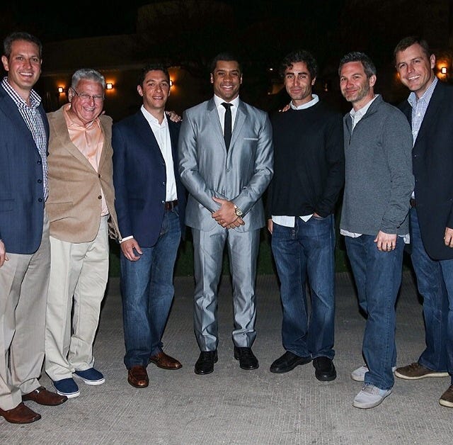In sharp contrast to the parade of plastic surgery disasters that graced my TV screen last night, I’m rejuvenated by the thought of Russell Wilson taking grounders and instruction this morning, and delivering a message this afternoon to Rougned Odor and Michael Choice and Drew Robinson and Keone Kela, a moment that six of the seven guys in the above photo enabled for the cost of $12,000, which I imagine is less than the wardrobe of any of the folks wolfing down pizza on last night’s self-congratulation-fest.