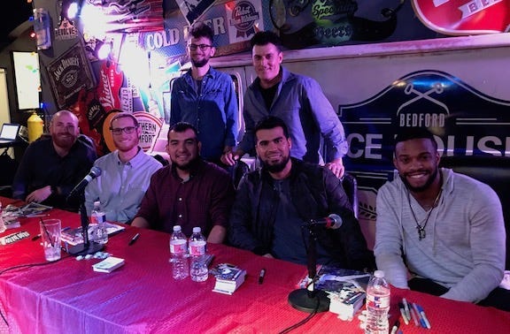 I got better in 2017, too — not as a writer or on any baseball scale, but in ways that I needed to on a personal level — and that wasn’t part of what we were gathering to celebrate, those seven guys above and the couple hundred of you who joined us at Bedford Ice House for the book release party on Wednesday night, but I felt it for those couple hours, as we gathered hundreds of toys for underprivileged kids whose next few days might turn out a little better because of it, and as a steady stream of your kids strutted through the autograph line meeting some of their baseball heroes and gaining some new ones.