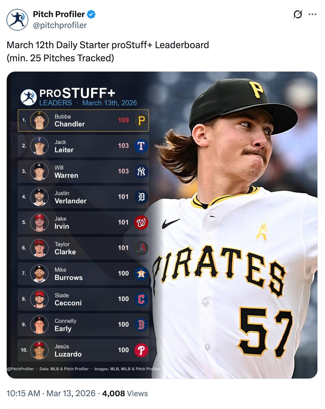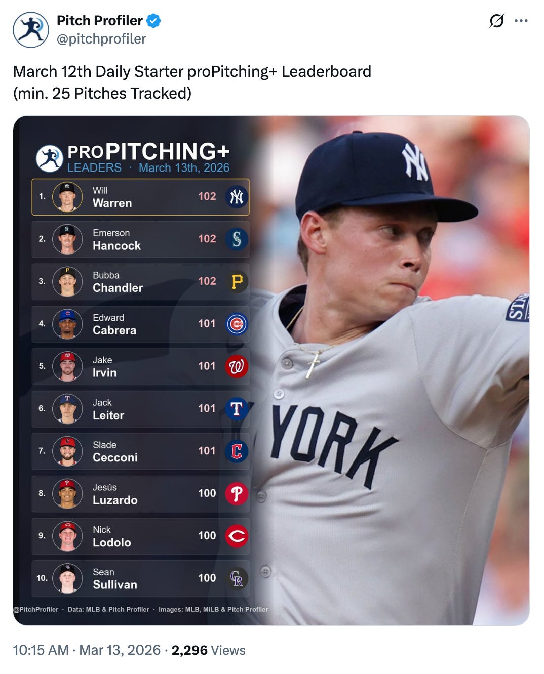 Jonathan Mayo, Jim Callis, and Sam Dykstra (MLB Pipeline) predict that RHP Caden Scarborough will “continue his ascension in 2026, ranking among the Minor League leaders in strikeouts and K/BB ratio and blossoming into the third-best righty pitching prospect in the game, behind only Seth Hernandez (Pirates) and Ryan Sloan (Mariners).”