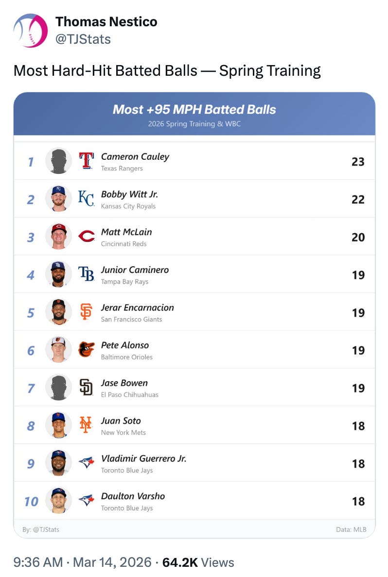 That the season hinges on MacKenzie Gore, whom they “are banking on giving . . . the sort of direction he didn’t have with the Nationals’ previous regime and optimizing an arsenal that includes the hardest left-handed fastball outside of [Tarik] Skubal, [Garrett] Crochet, and Jesús Luzardo.”