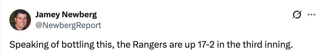 If you’re among those checking out today’s free post, I’d love to have you join our community through one of several different subscription options. I wrote 285 stories in this space in 2025 — and would love nothing more than the Rangers putting together a season in 2026 that prompts more than that.