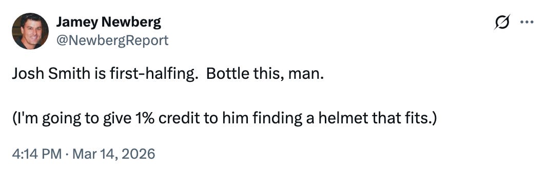 Josh Smith started at third base on both Friday and Saturday, which you certainly don’t do with your everyday second baseman this late in camp unless you’re looking to cover contingencies.