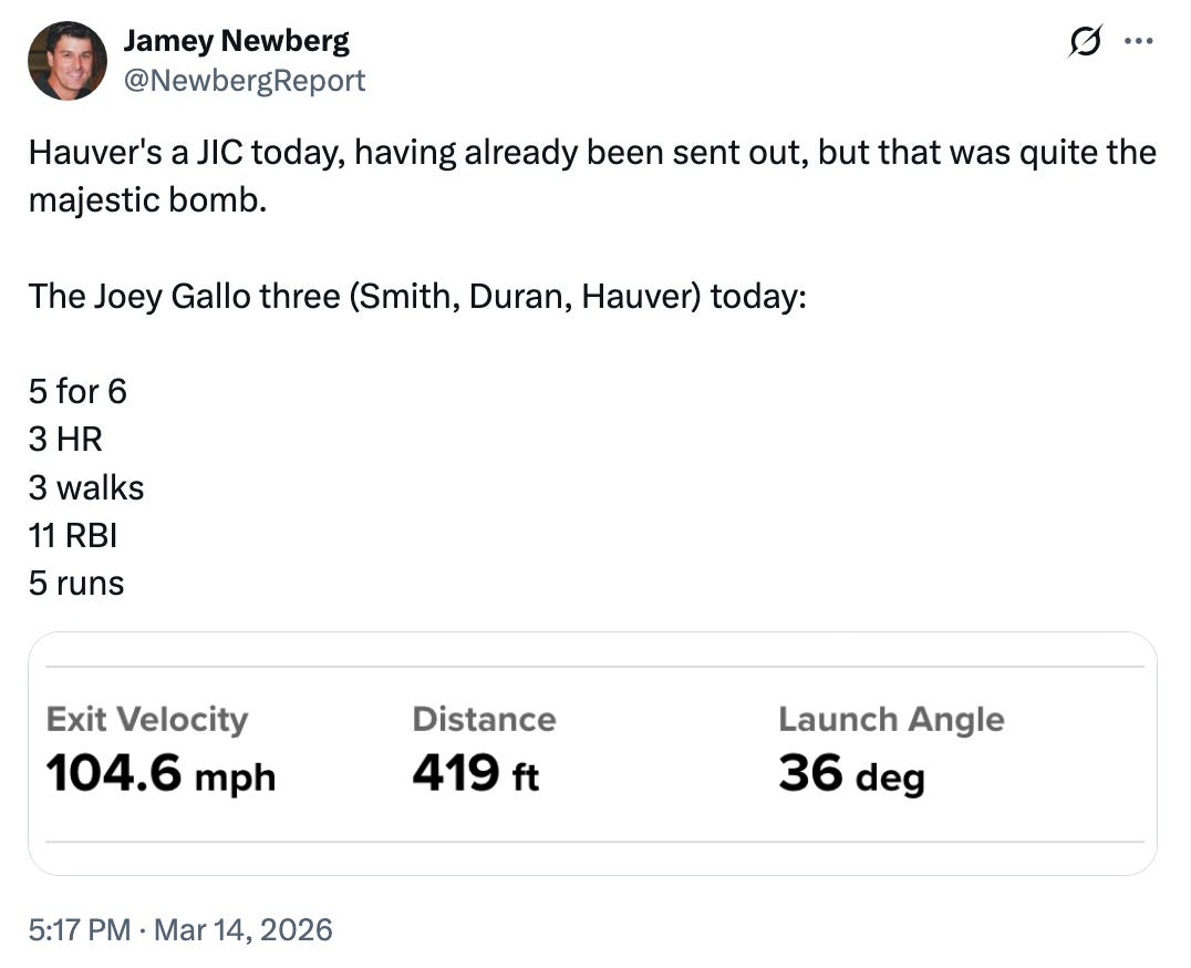 Smith, for what it’s worth, is really locked in at the plate — and so is Ezequiel Duran.