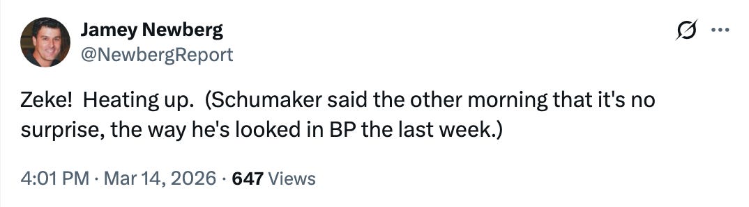 It’s inescapable, I suppose, after getting around a young player — and learning more about his mindset, his preparation, his human side — that my opinion of him and optimism for where his career is headed kicks up a level or two. (Not always; I can think of a couple exceptions in past years.) But whether there’s a halo effect at work or not, I can’t tell you how excited I am to see what lies ahead in 2026 for RHP Caden Scarborough, 3B Jack Wheeler, and SS/2B/CF/3B/RF Cam Cauley.